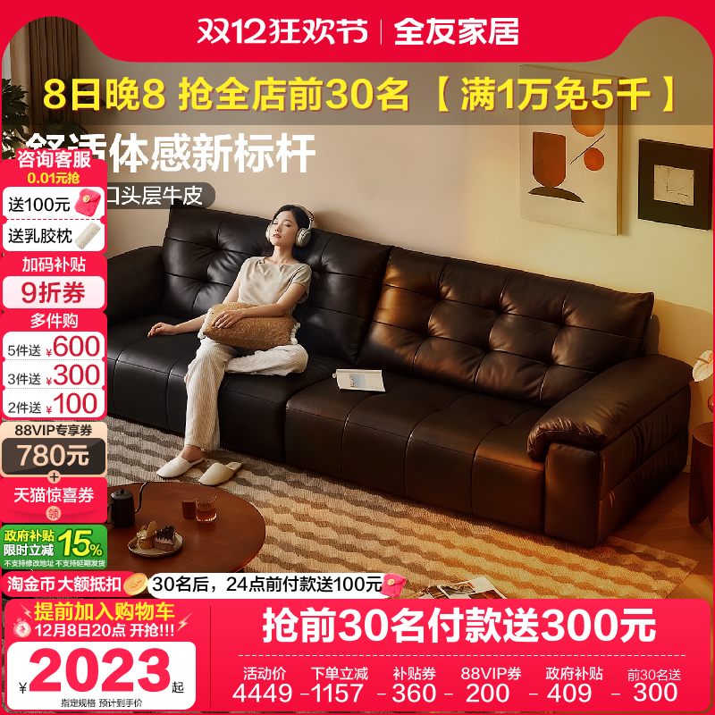 全友家居现代简约云朵真皮沙发客厅2025新款小户型奶油风沙发床