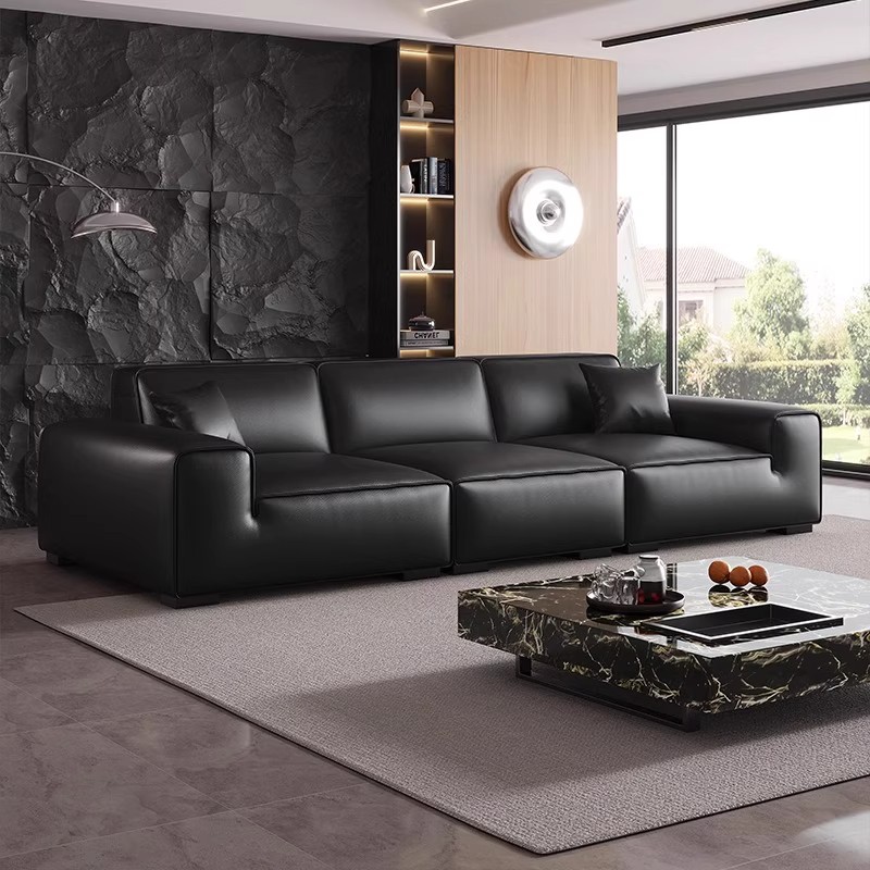 帕沙曼真皮沙发大黑牛意式极简客厅2025新款黑色现代简约头层牛皮