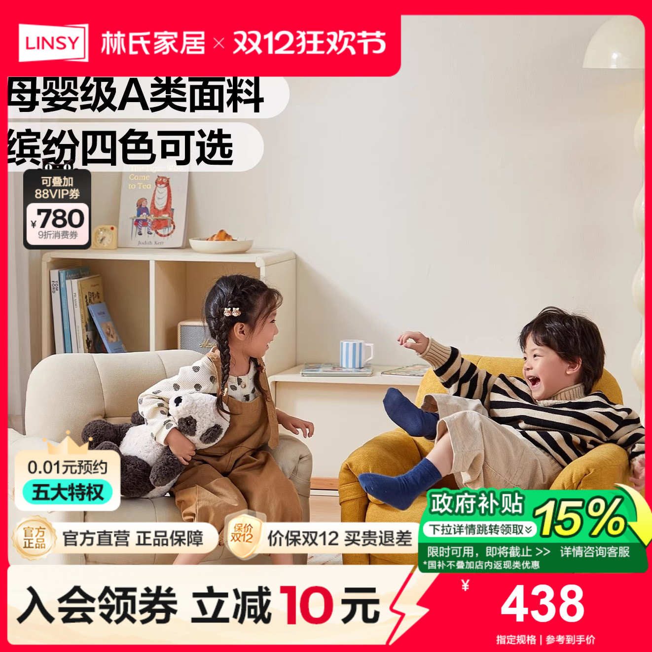 林氏甄选现代简约客厅阳台头层牛皮真皮儿童沙发婴儿宝宝专用阅读