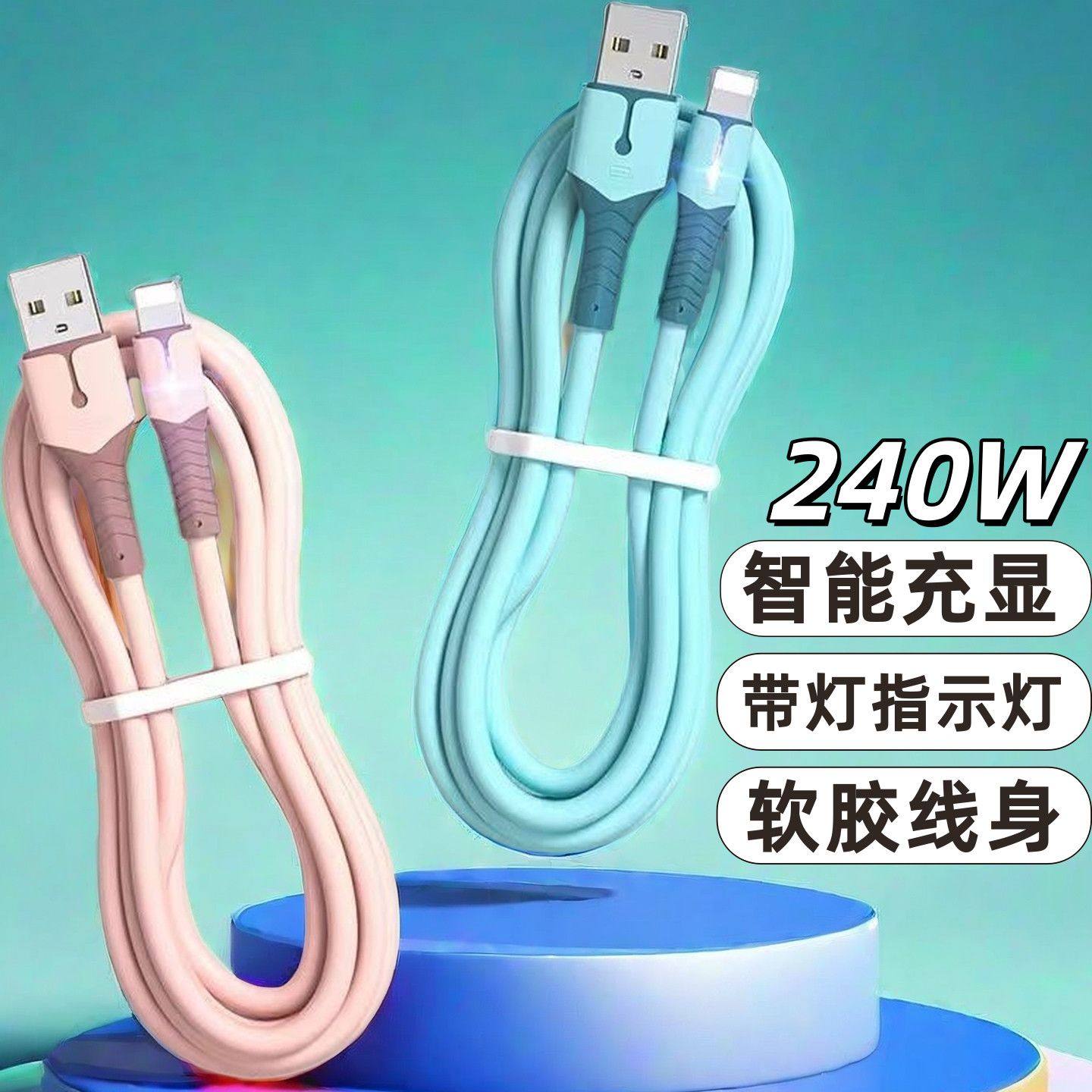 适用苹果带灯数据线6A闪充液态软胶线适用华为/USB延长线240W快充