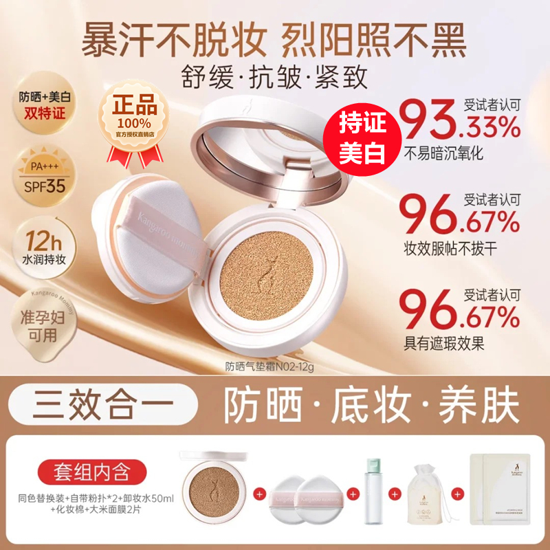 袋鼠妈妈孕妇气垫霜哺乳期可用养肤粉底液CC霜遮瑕保湿控油化妆品