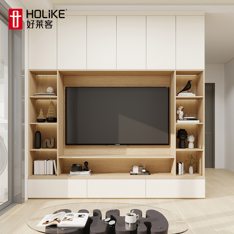 欧派家具全屋定制客厅靠墙轻定制电视柜组合柜家用落地储物收纳柜