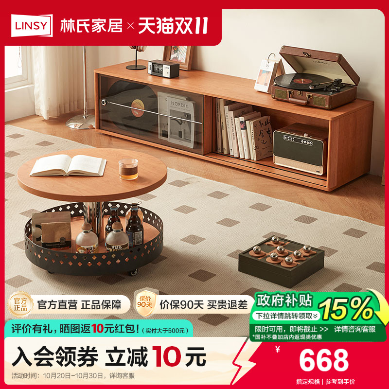 电视机柜2025新款客厅家用茶几组合小户型收纳储物实木落地柜卧室