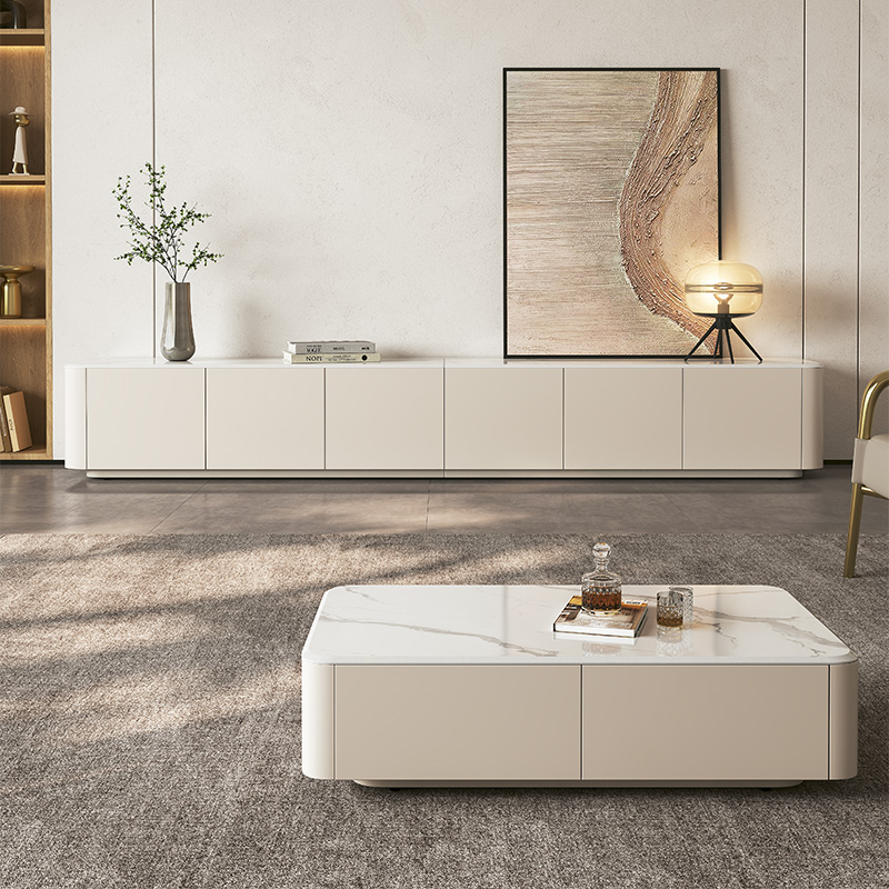 纳美格调现代轻奢大理石电视柜茶几组合小户型奶油客厅家用落地柜
