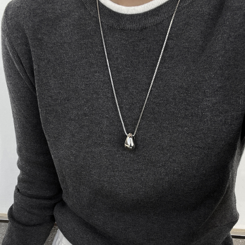 简约银色水滴吊坠钛钢项链女秋冬高级感不掉色长款毛衣链装饰配饰