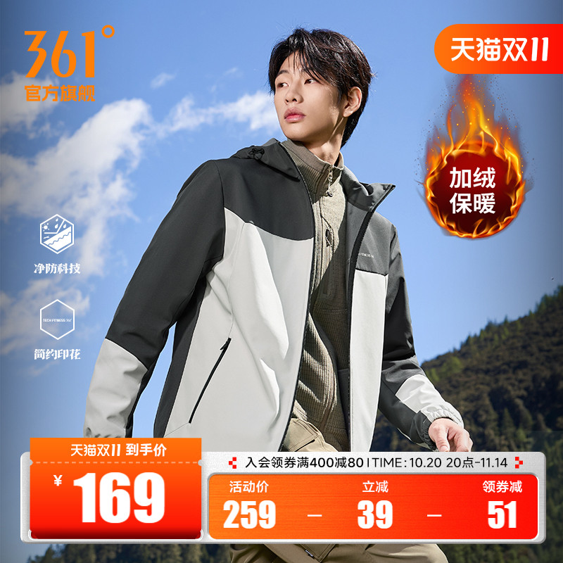 361运动外套2025秋冬新款男士梭织加绒连帽保暖上衣户外运动夹克
