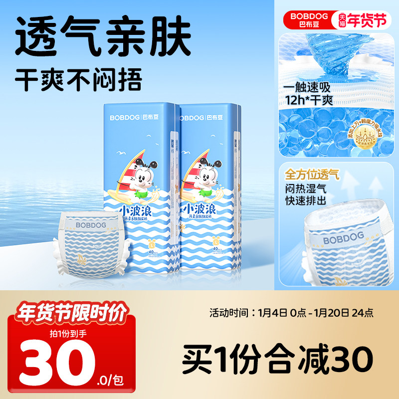 BOBDOG巴布豆小波浪纸尿裤男女婴儿超柔亲肤透气春夏尿不湿2包