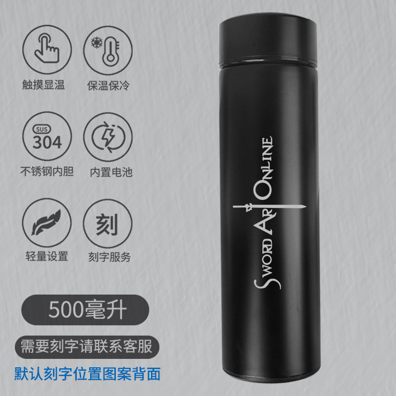 动漫周边刀剑神域保温杯黑色不锈钢杯子直身杯显温测温杯水杯保冷