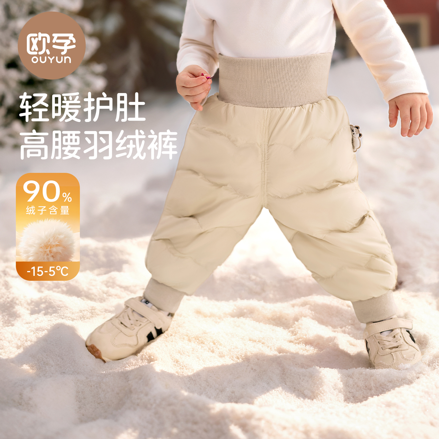 欧孕宝宝羽绒裤高腰女童秋冬外穿裤子2025保暖加厚白鸭绒男童长裤