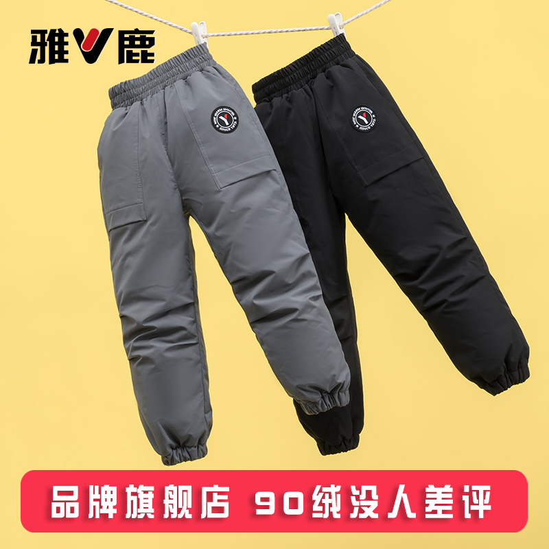 雅鹿儿童羽绒裤男童女童加厚宝宝外穿长裤小童中大童冬季保暖裤子