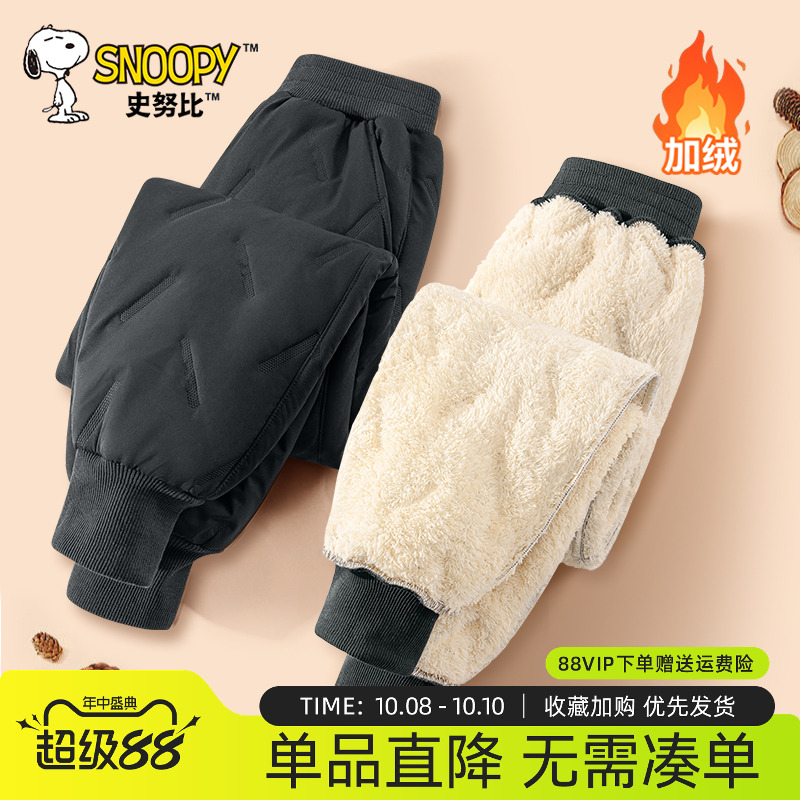 史努比儿童羽绒裤男童一条过冬绒裤冬季加厚棉裤男孩防寒加绒裤子