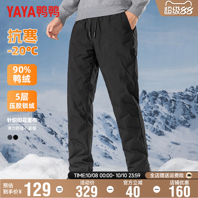 鸭鸭男士羽绒裤2025年冬新款鸭绒百搭松紧修身长裤加厚保暖裤子C