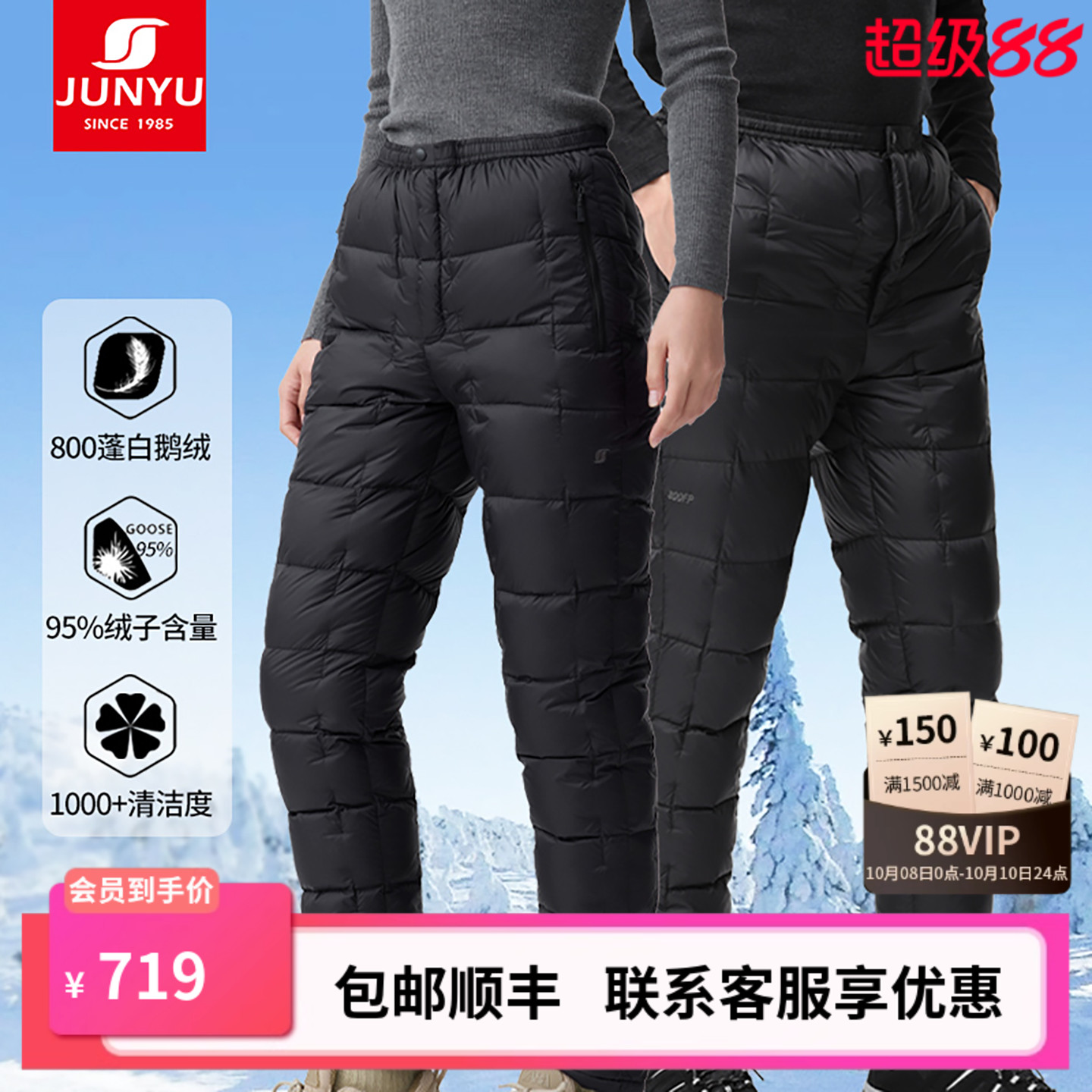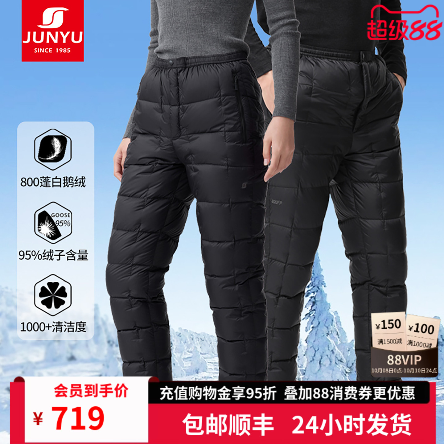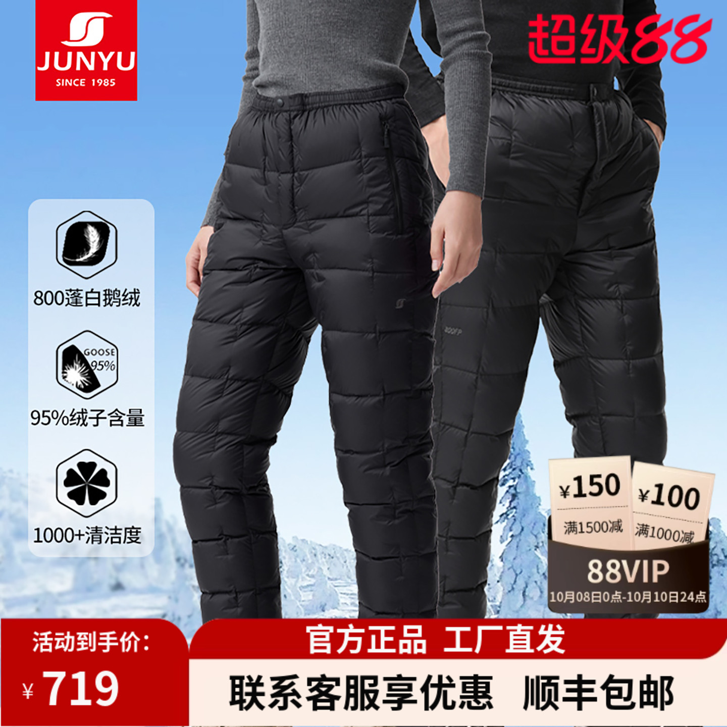 [黑标]君羽户外鹅绒羽绒裤男加厚防风800蓬95绒鹅绒裤女I53203
