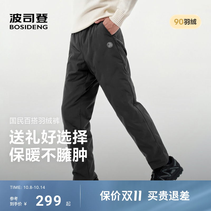 波司登冬季新款男士外穿保暖鸭绒羽绒裤运动抽绳加厚舒适防寒显瘦