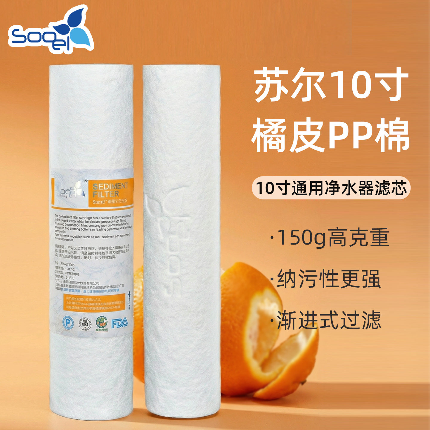 苏尔净水器过滤器滤芯橘皮PP棉150g高克重家用三级前置通用配件