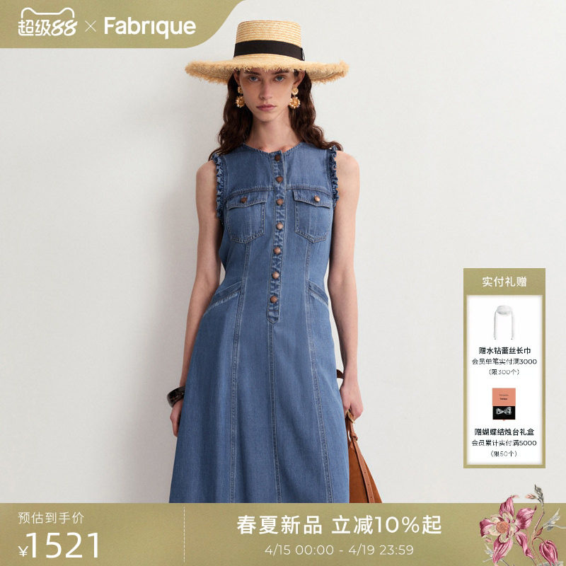 Fabrique罗马假日 水洗浅蓝薄款无袖圆领牛仔连衣裙26年春夏新品