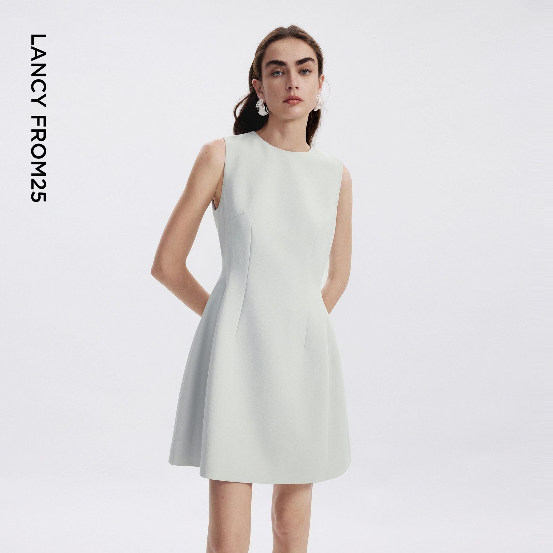 朗姿25圆领收腰无袖简约优雅法式连衣裙通勤裙子女2026年夏季新款