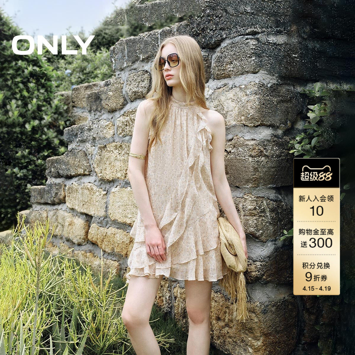 OCHIRLY欧时力 哑光雪纺连衣裙裙子圆领高级显瘦内搭夏季