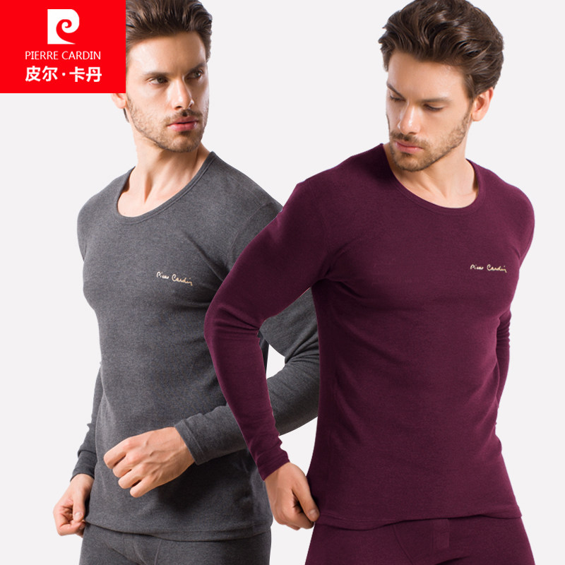 皮尔卡丹男士加绒加厚保暖内衣男款高档保温上衣秋冬季中年假两件