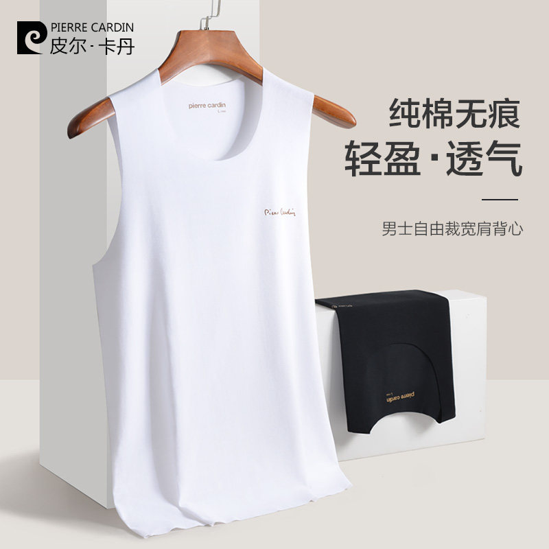 皮尔卡丹内衣男士背心纯棉青年无痕白色跨栏修身型打底无袖背心男