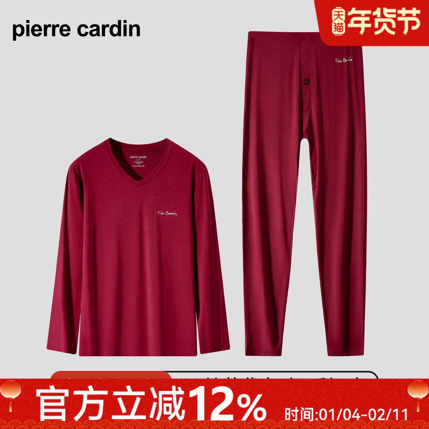 顺丰皮尔卡丹内衣男女莫代尔秋衣裤大红色本命年生肖马情侣红礼盒