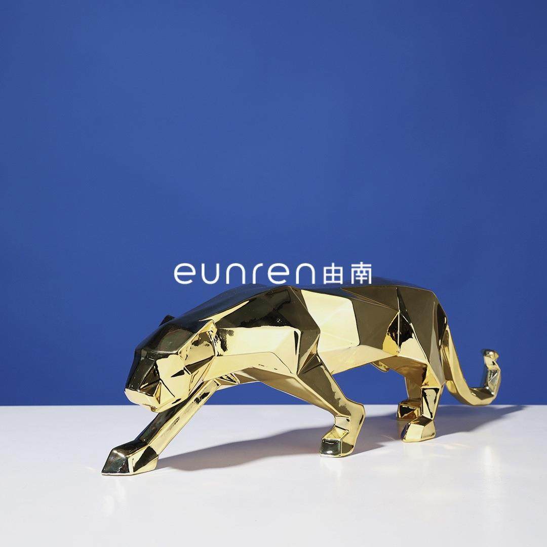 现代创意抽象几何切面豹子摆件家居客厅办公室招财装饰树脂工艺品