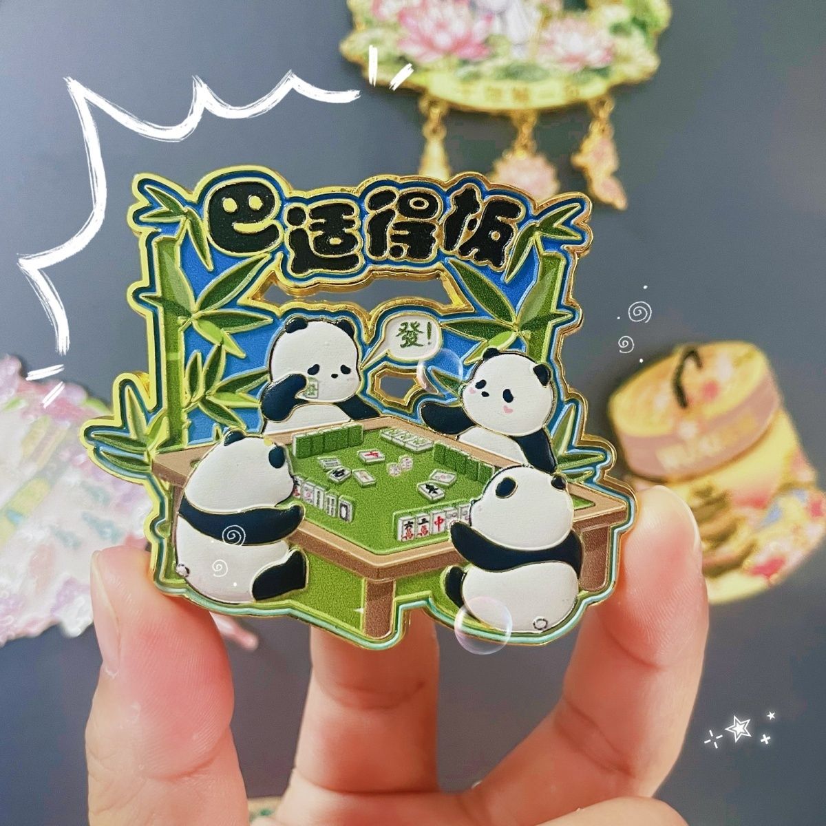 四川文创城市熊猫麻将特色创意AR金属冰箱贴旅游纪念收藏家居礼物