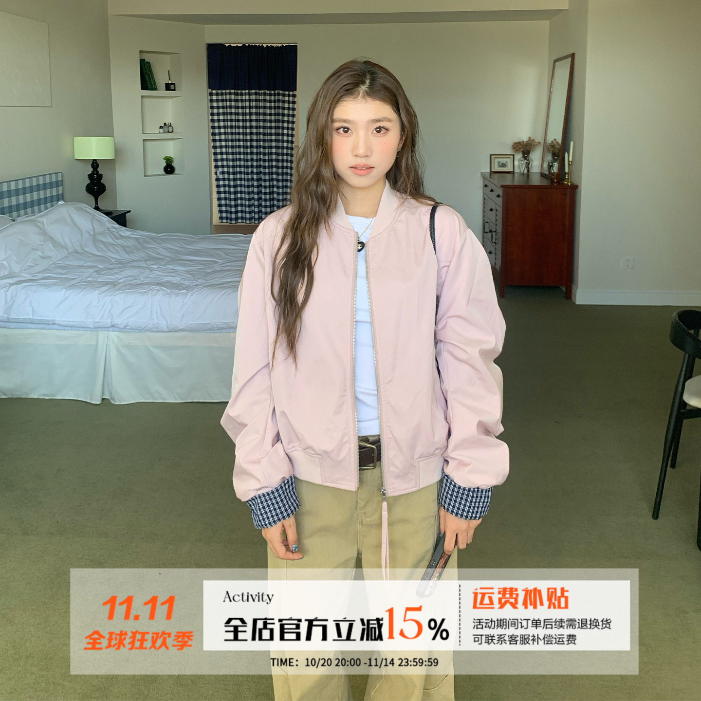 2025秋季新款女装甜美时尚宽松仿麂皮长袖飞行员夹克外套4344655