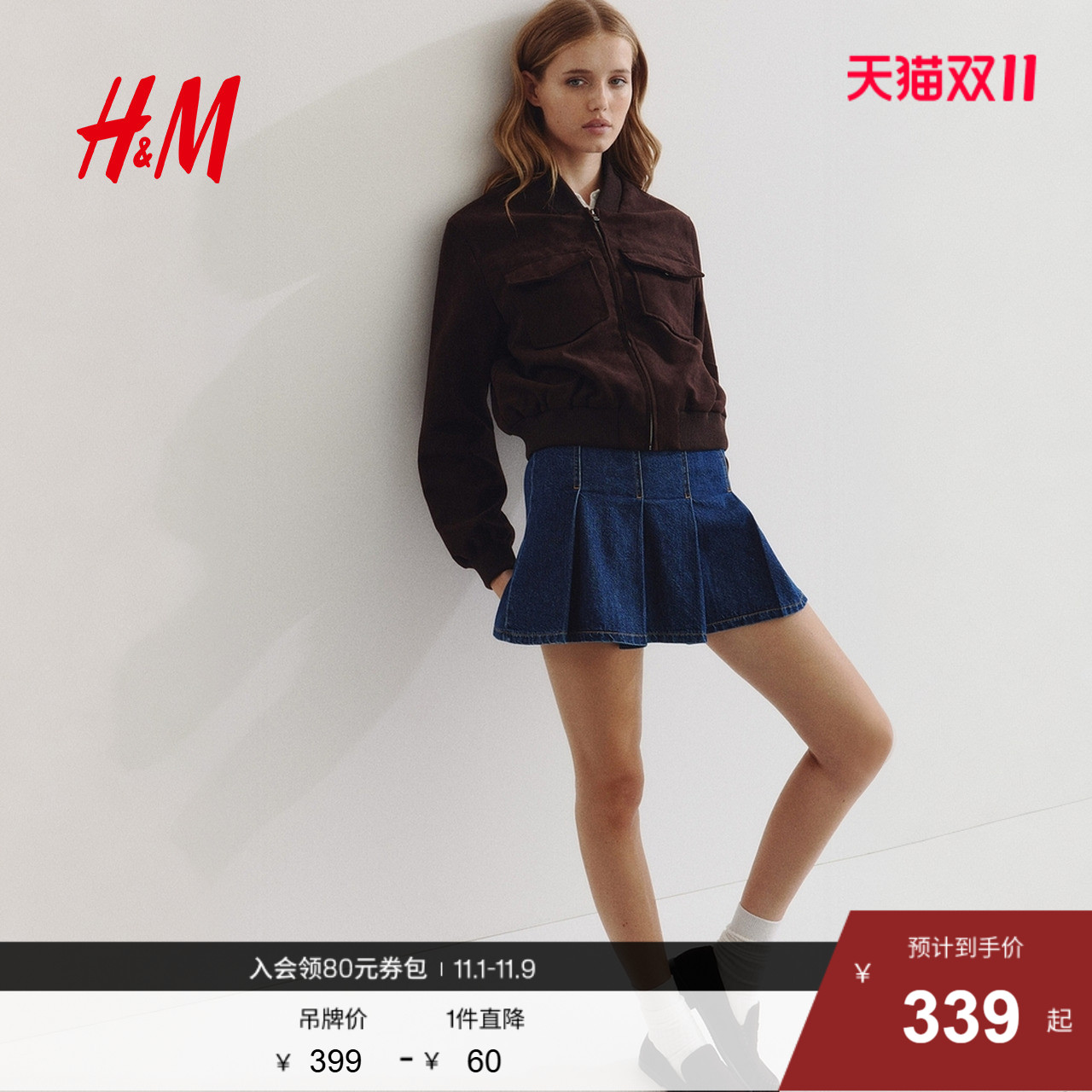 HM女装短外套2025秋季新款立领气质拉链巴恩风飞行员夹克1294031