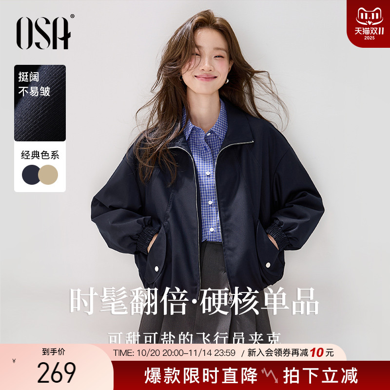 【飞行夹克】OSA欧莎工装风短外套女秋季新款休闲慵懒风夹克上衣