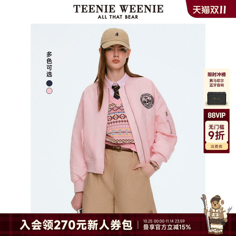TeenieWeenie小熊女装棉服2025秋新款美式甜酷率性飞行员夹克外套