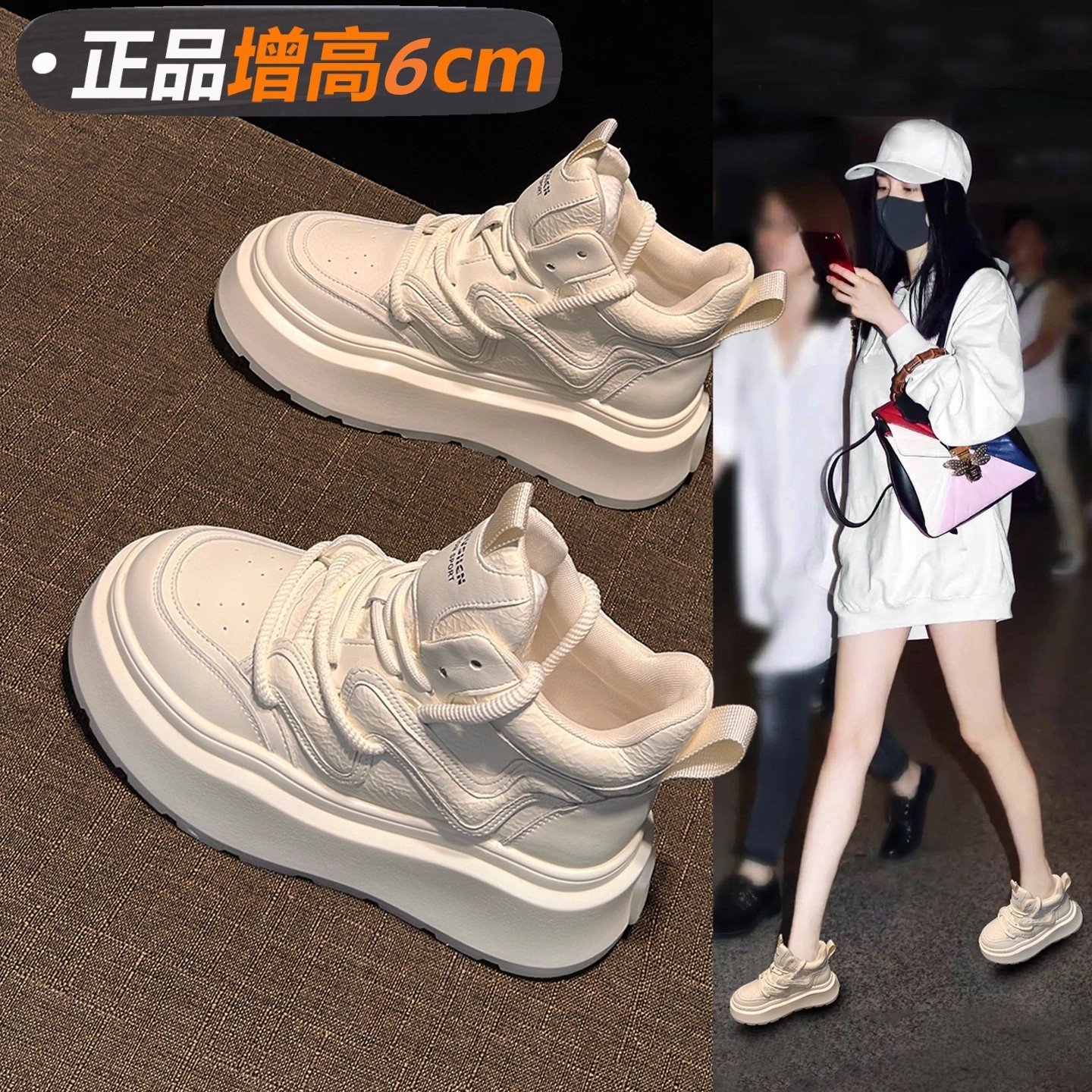 真皮厚底增高6公分秋冬女2025新款小个子时尚百搭舒适透气小白鞋