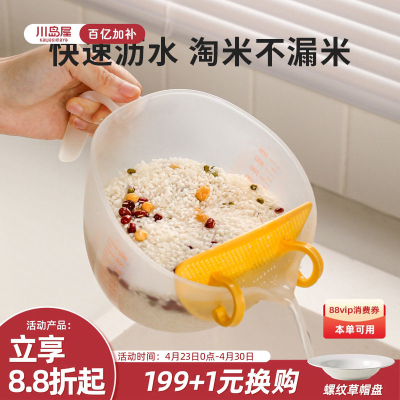 川岛屋淘米神器食品级洗米筛淘米盆沥水篮专用洗菜盆淘米杯过滤器