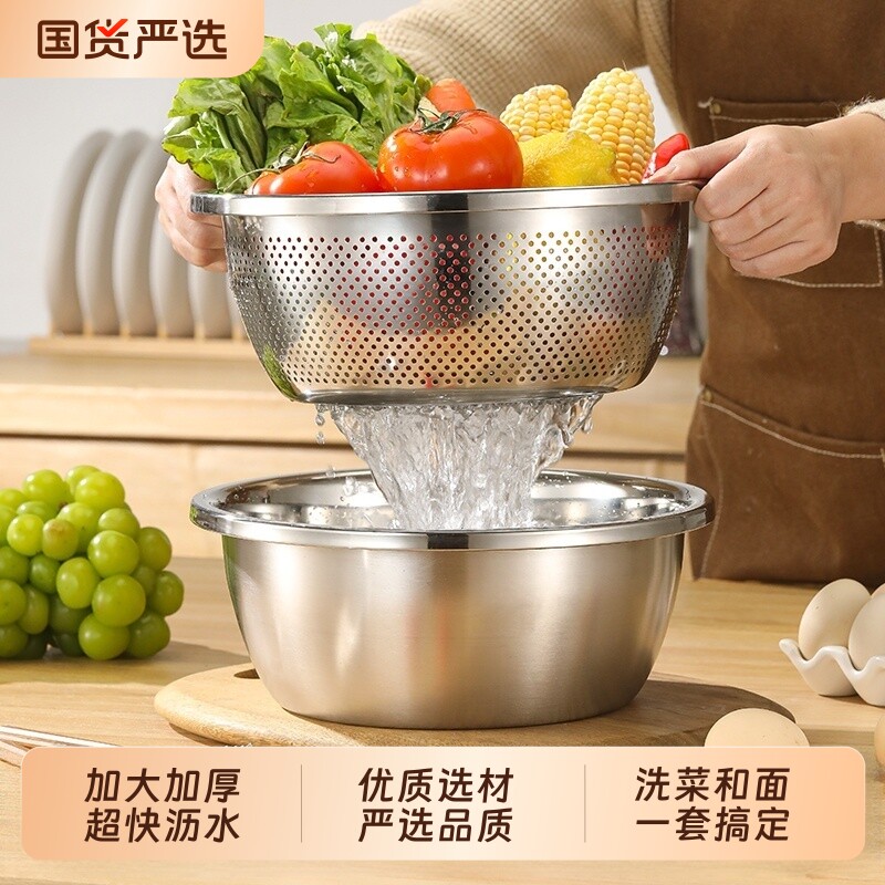 加大加厚不锈钢盆和面盆不锈钢沥水篮洗菜盆打蛋盆厨房家用漏盆子