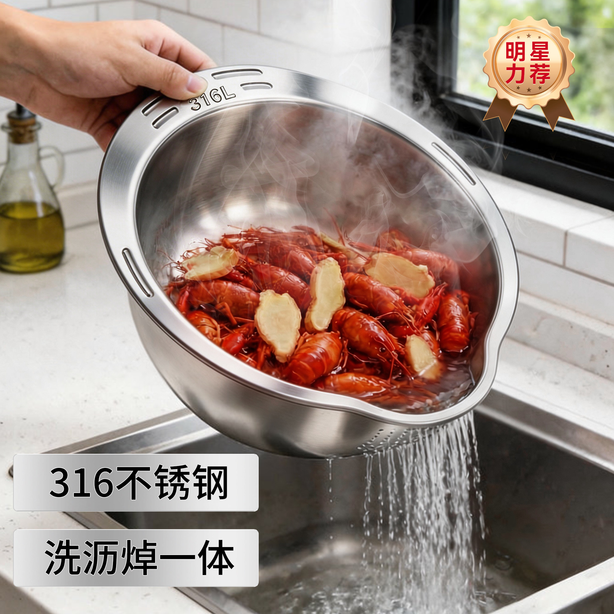 佳帮手316不锈钢沥水篮食品级淘米洗水果菜厨房家用304滤水洗肉盆