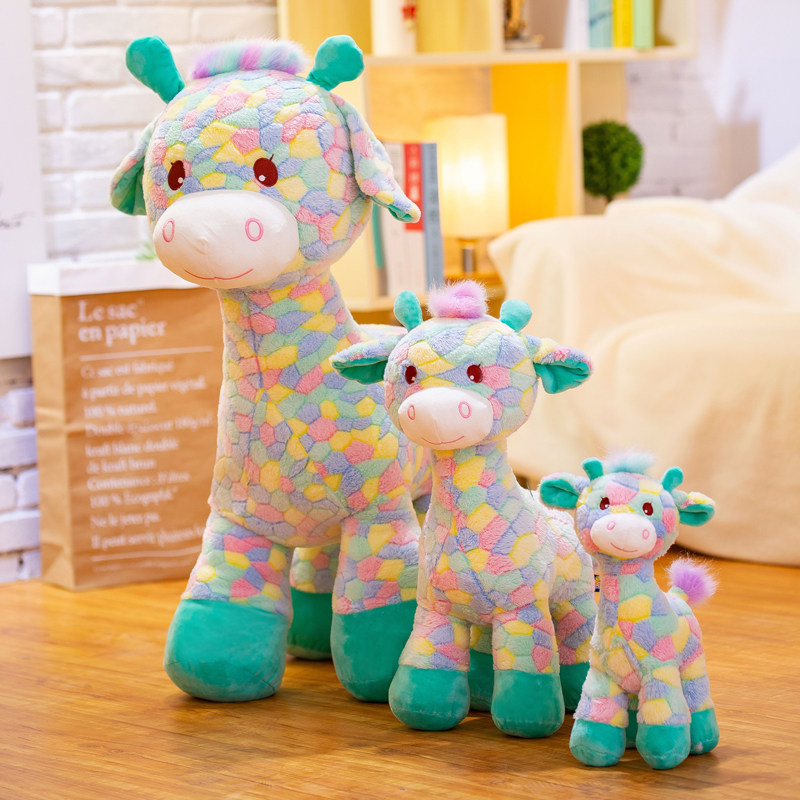 七彩长颈鹿毛绒玩具公仔梅花鹿玩偶布娃娃胖嘟嘟小鹿装饰礼物女孩