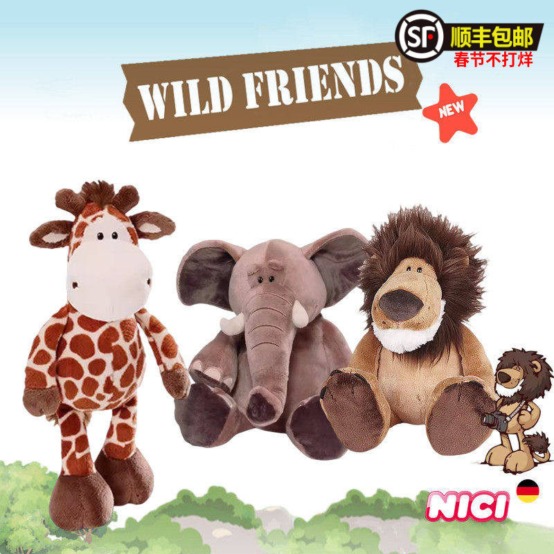 德国NICI专柜正品野生猴子狮子大象长颈鹿毛绒玩具公仔玩偶仿真