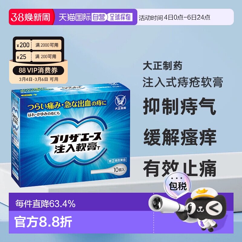 日本直邮大正制药注入式软膏痔疮软膏缓解内痔外痔混合痔10支/盒