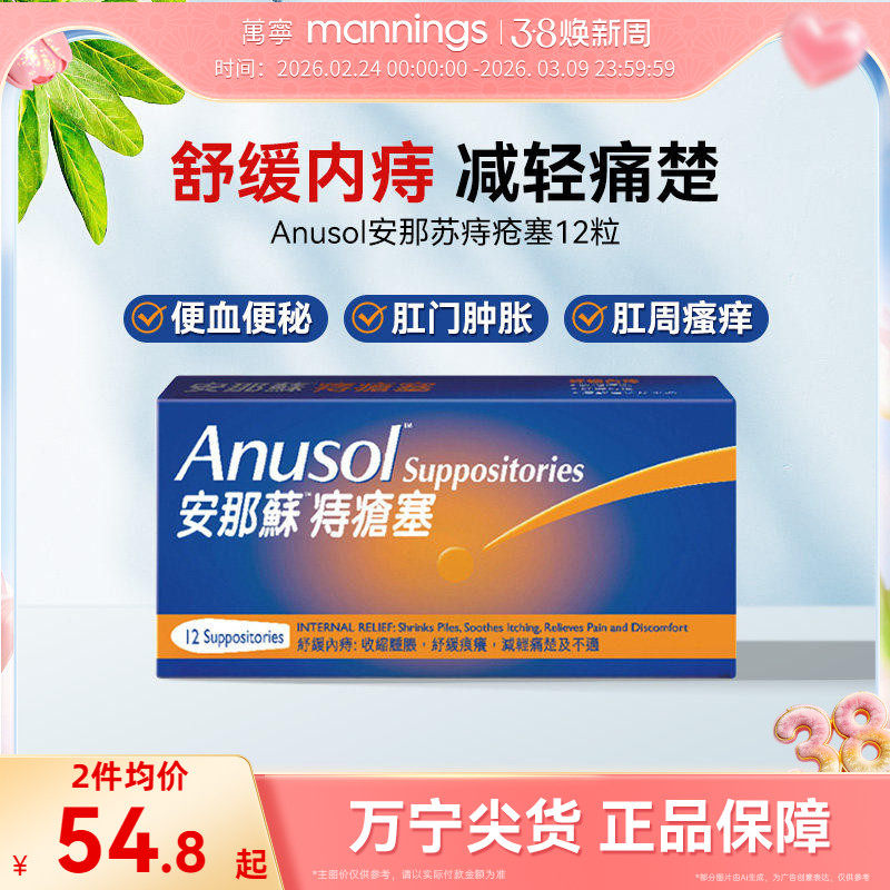 万宁港版Anusol安那苏痔疮塞软膏瘙痒肛裂内痔外痔舒缓肿胀疼痛