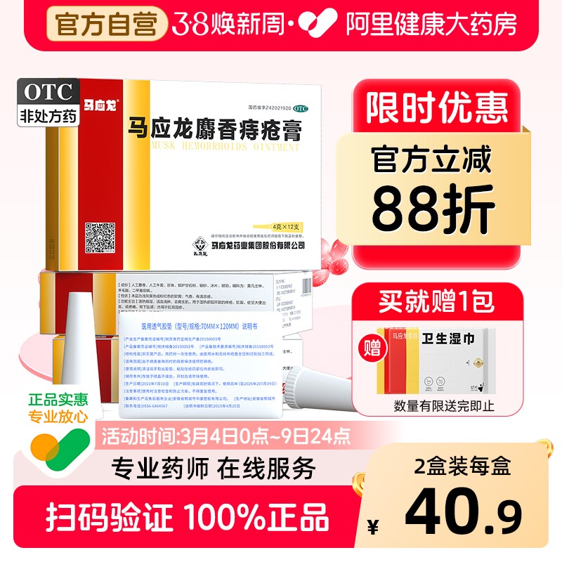 包邮】马应龙麝香痔疮膏药肛裂便血消肿内痔外痔混合痔外用软膏药