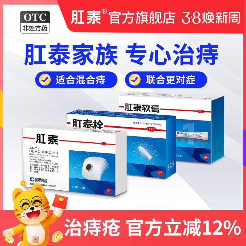 【混合痔套装】肛泰套装痔疮贴痔疮膏痔疮膏栓外痔止痛便血消肉球