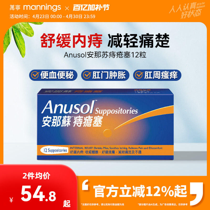 万宁港版Anusol安那苏痔疮塞软膏瘙痒肛裂内痔外痔舒缓肿胀疼痛