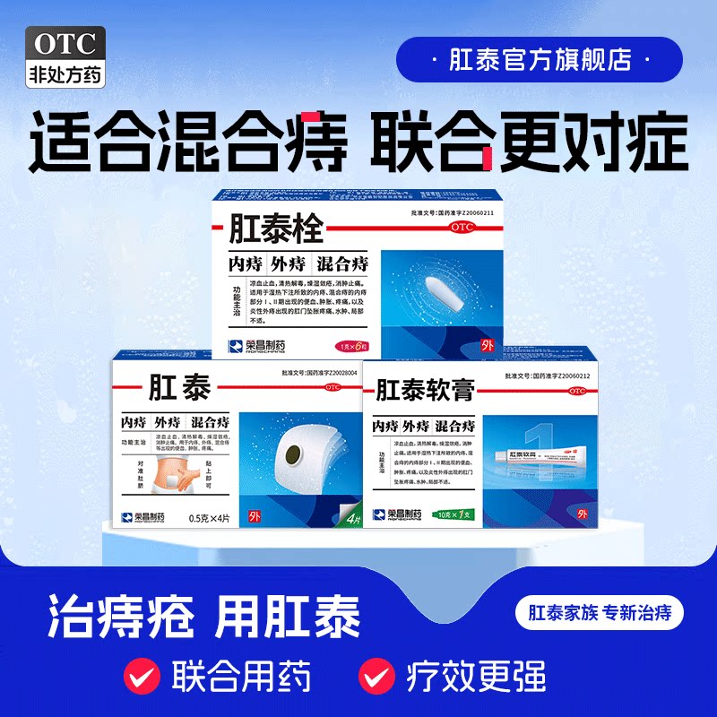 【混合痔套装】肛泰套装痔疮贴痔疮膏痔疮膏栓外痔止痛便血消肉球