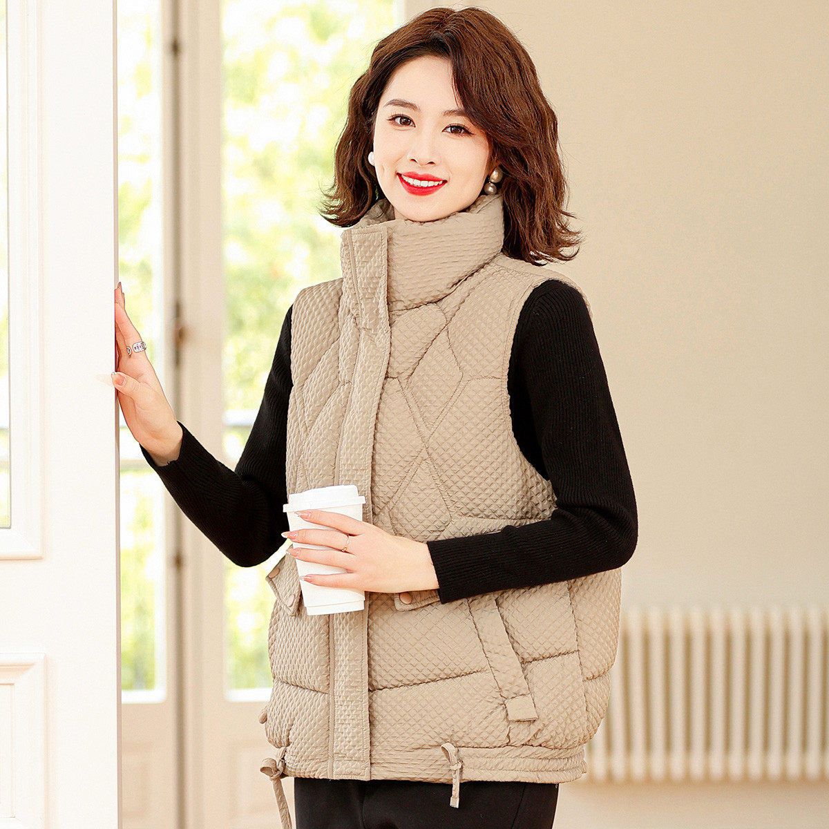 秋冬马甲女短款保暖羽绒棉内胆大码背心内穿贴身妈妈装中老年马夹