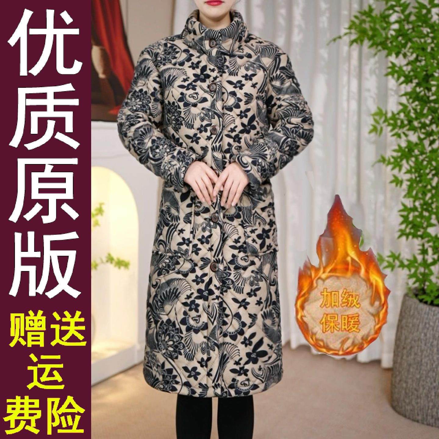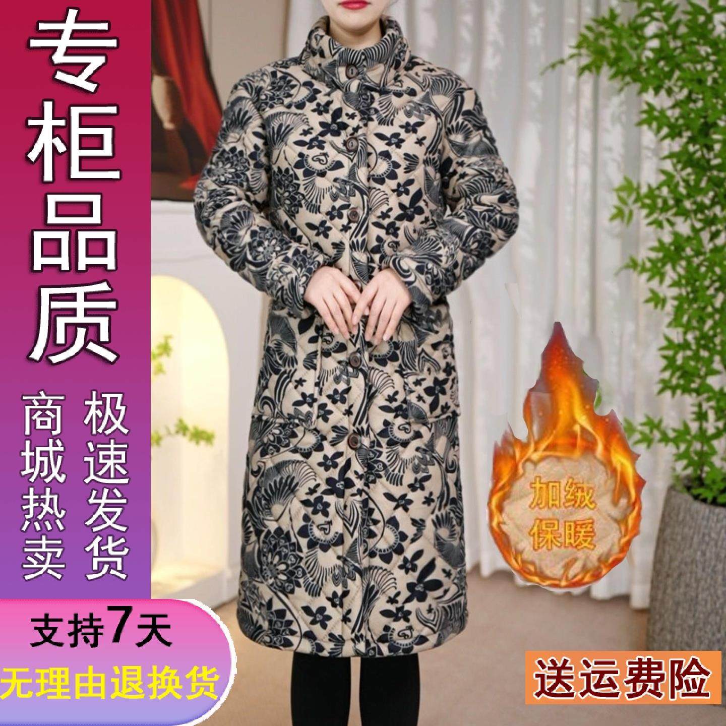 好品推荐2025冬季新款加绒加厚棉衣H1中长款外套妈妈装中老年印花