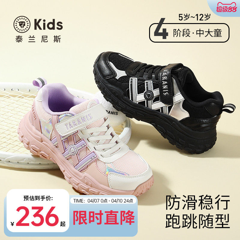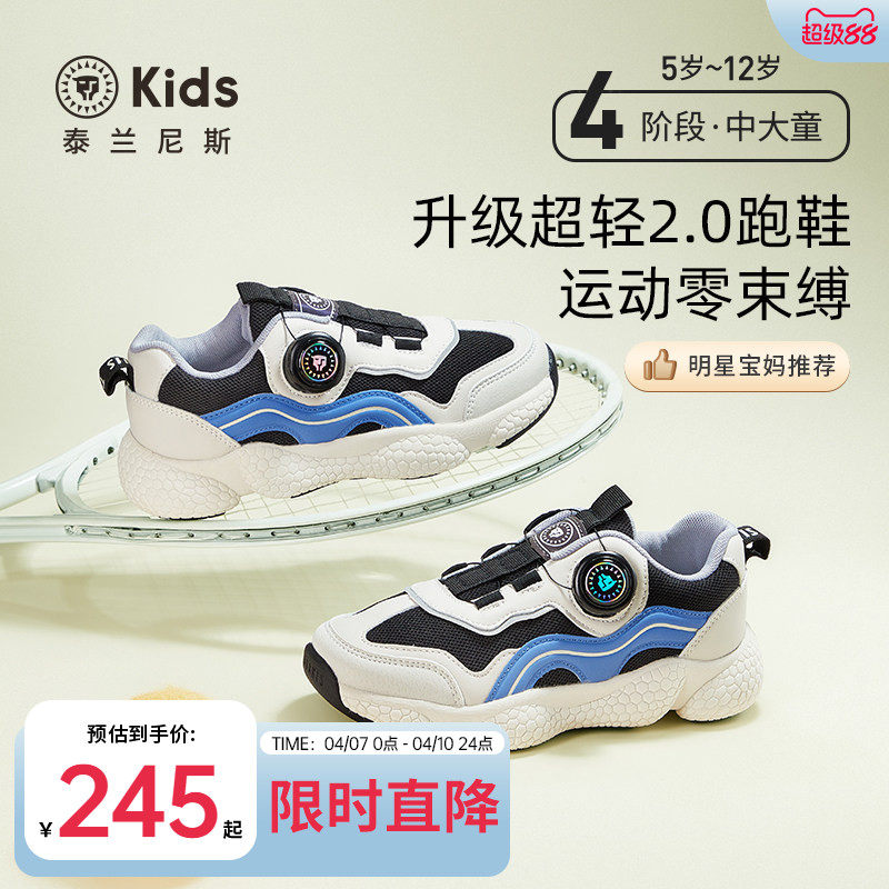 泰兰尼斯kids春款中大童运动鞋男童时尚轻量跑步鞋女童休闲鞋
