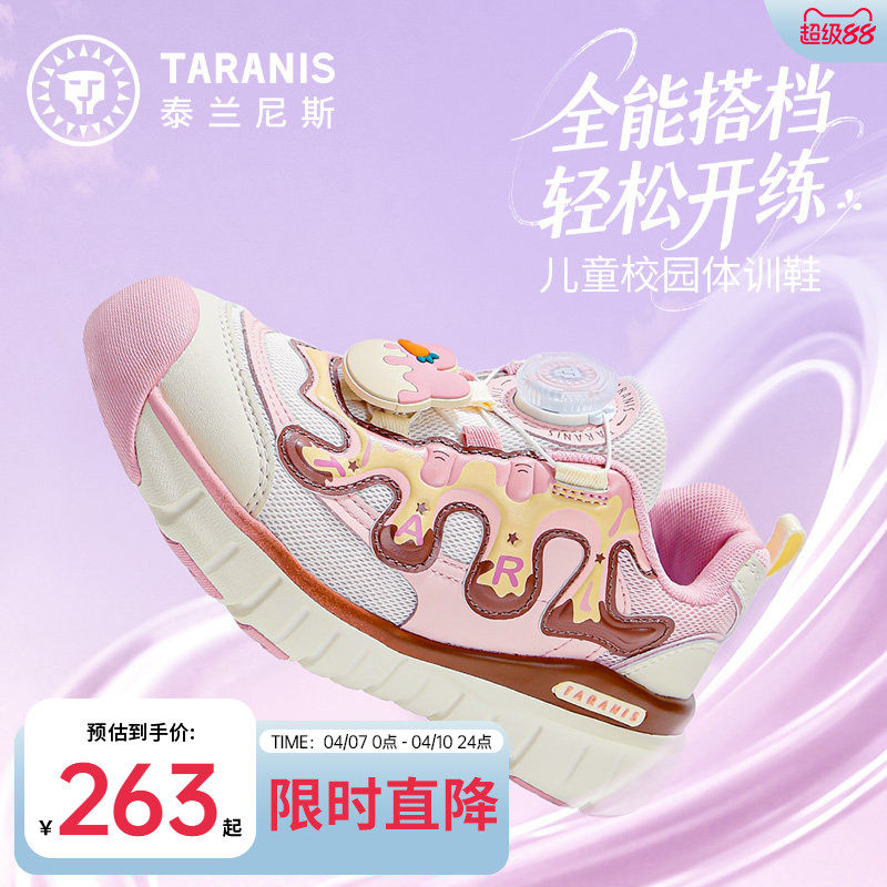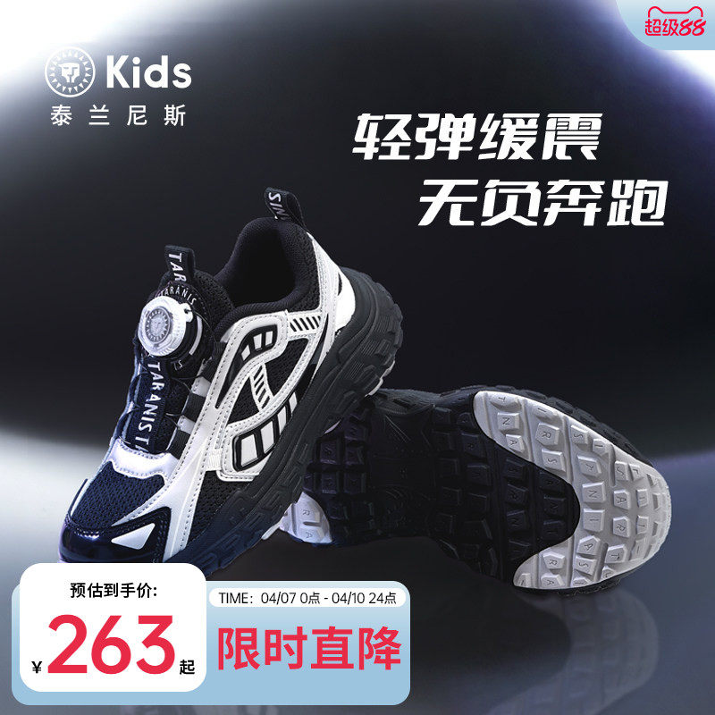 泰兰尼斯kids春款中大童运动鞋女童校园体训鞋男童旋钮跑步鞋