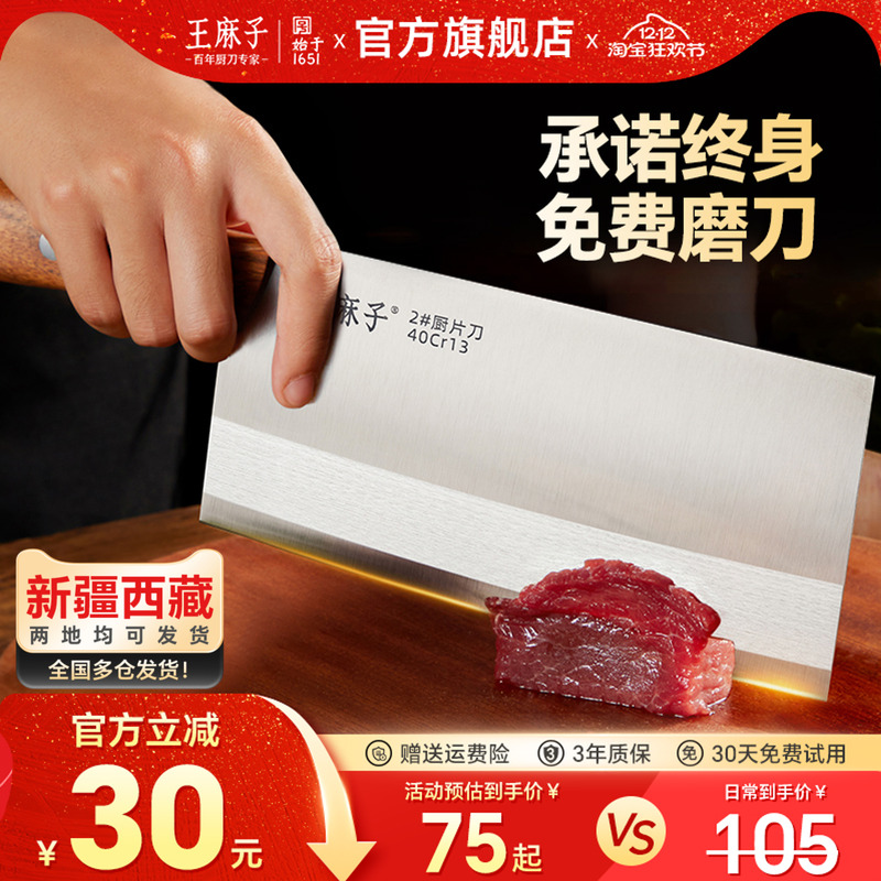 王麻子菜刀家用正品厨师专用斩切菜刀切片刀具厨房锋利官方旗舰店