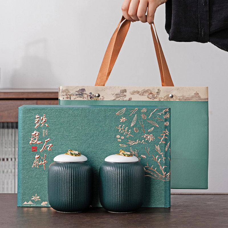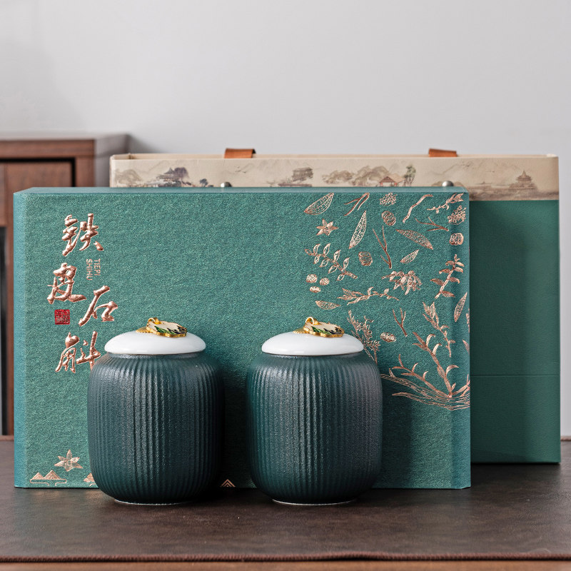 高档铁皮石斛礼盒空盒陶瓷密封罐铁皮枫斗石斛粉包装盒空礼盒定制
