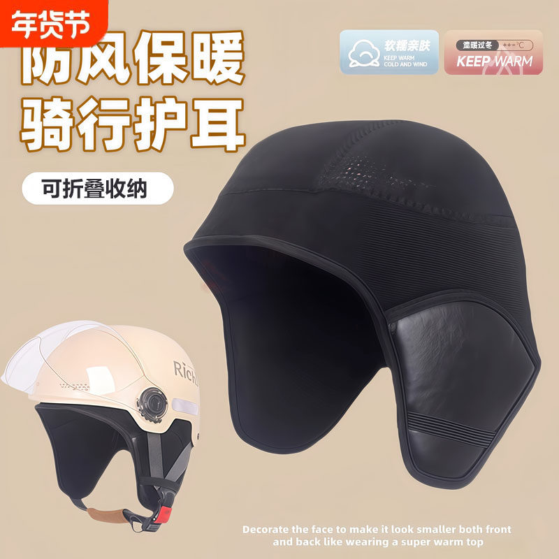 骑行头盔内衬帽摩托防风内胆帽子男女秋冬季骑电动车保暖护耳小帽